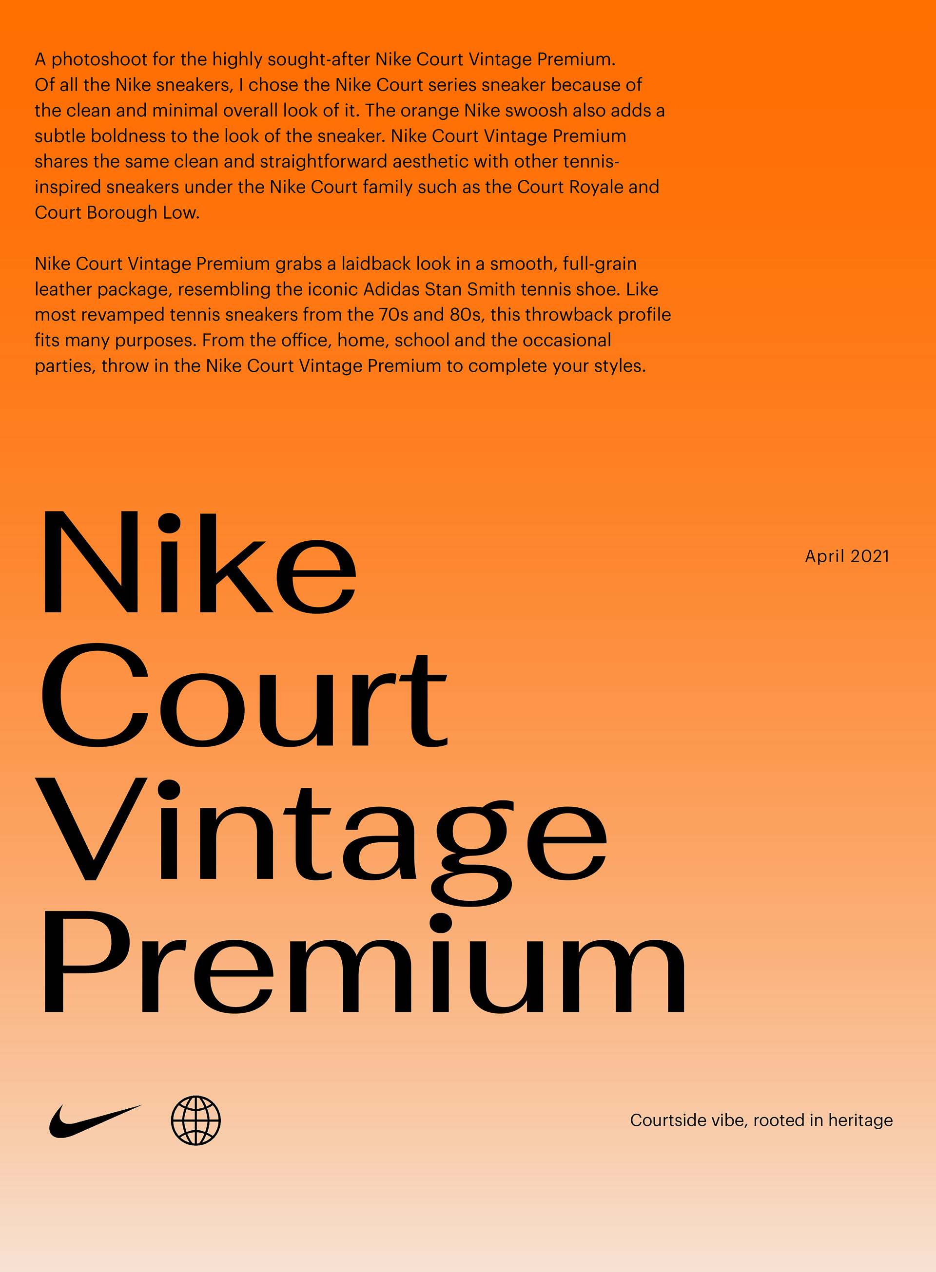 Photoshoot for the highly-sought after Nike Court Vintage Premium.