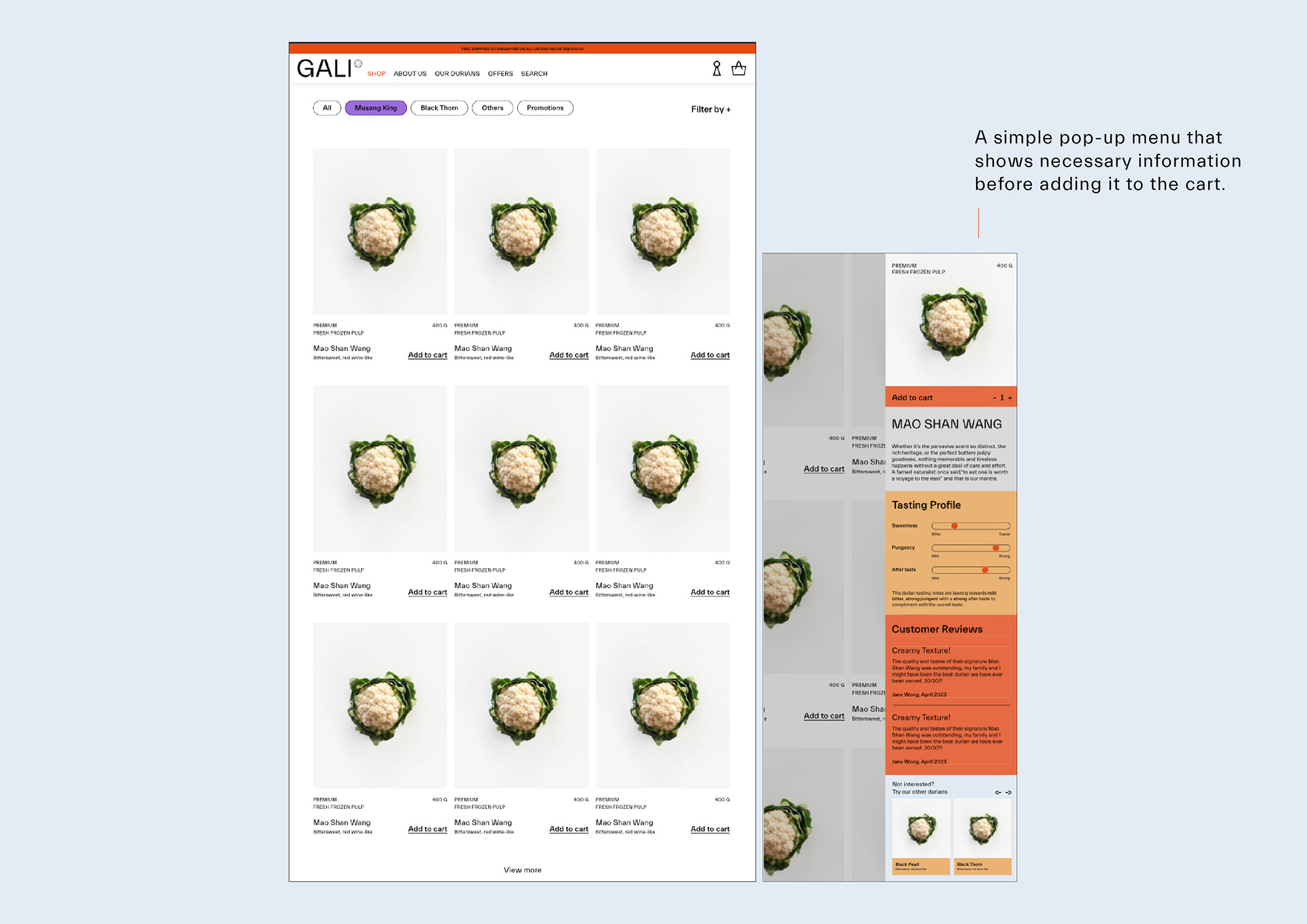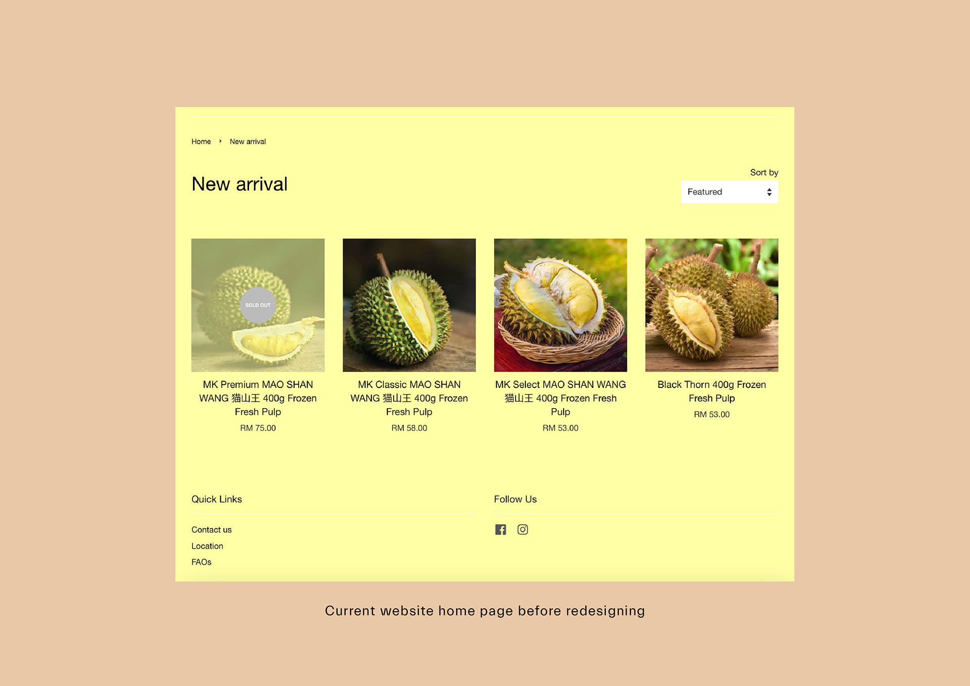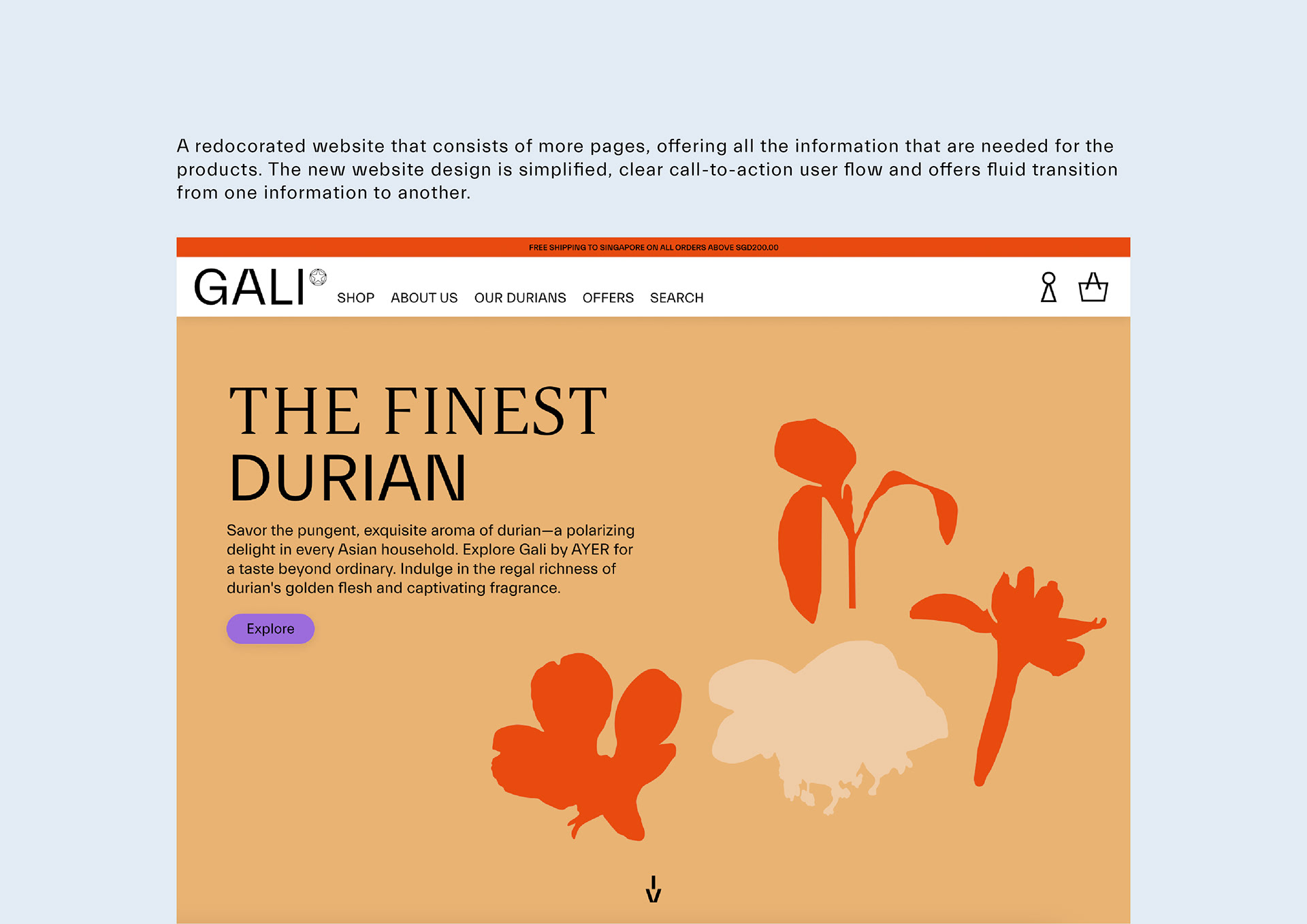 A simple web design for a durian supplier Gali Estate. The redesign focuses on simple information hierarchy, smooth call-to-action flow for all users and web layouts that are easy to interact with. Work is done under Where's Gut Design Studio.